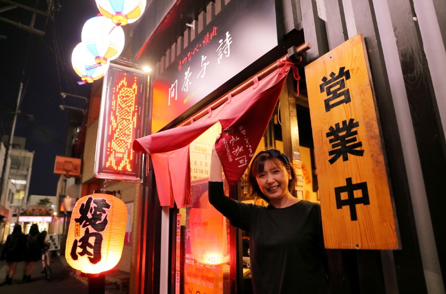 長町の駅前商店街から脇へ入った場所にひっそりと灯る「フラワー通り」の明かり。『間茶与詩』は、20店舗ほどが軒を連ねる、この小さな横丁の中の一軒だ。提供するのはぷるりと光る桃色の豚モツ。そう、ここは煙さえも愛おしい横丁のホルモン店だ。店主の髙橋正好さんは、脱サラ後にさまざまな商いを経て、4年前にこの店をオープンさせた。