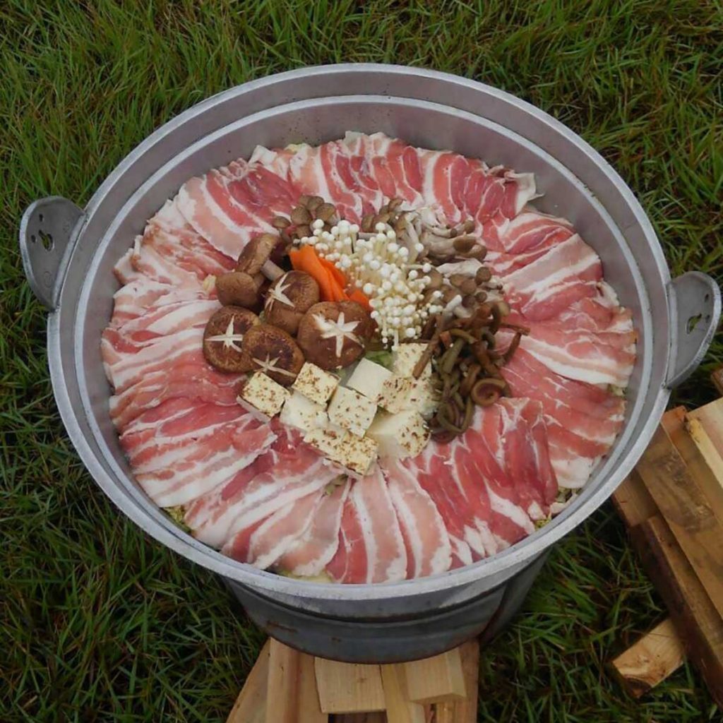 こちらの手ぶらプランは、岩中ポークを使った芋煮が食べ放題!醤油味と味噌味があり、6名以上なら2つの鍋で両方の味を同時に楽しめますよ。追加料金で最初の醤油味の鍋を和牛鍋に変更も可能です。広瀬川沿いには200名収容できるテントも完備。雨天でも芋煮&BBQが楽しめるのはうれしいですよね。愛子駅から無料送迎バスが運行しているのも魅力!