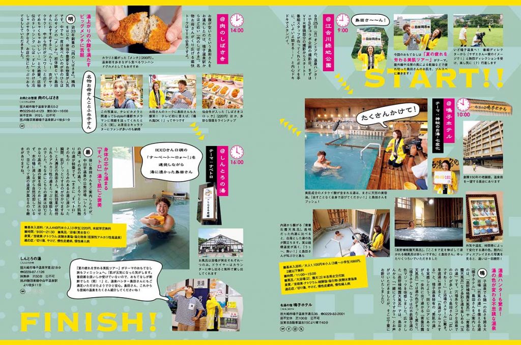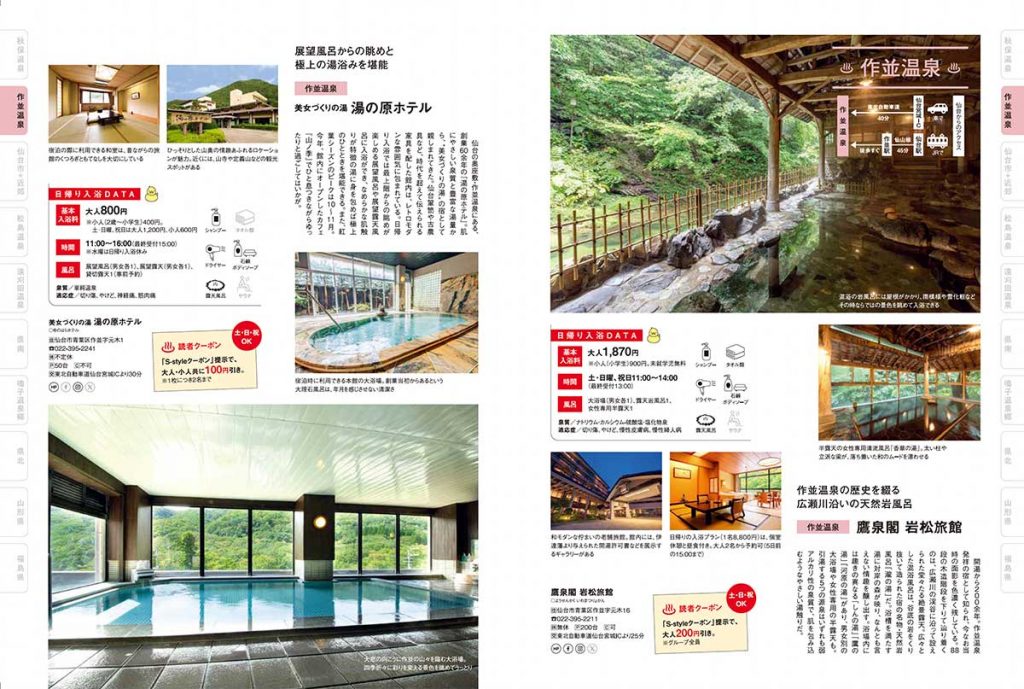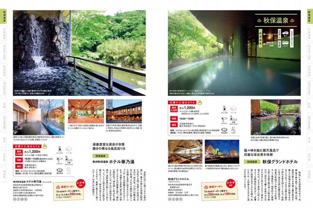 宮城・山形・福島合わせて58軒の日帰り温泉施設が登場する巻頭特集。気になるコンテンツはこちら‼