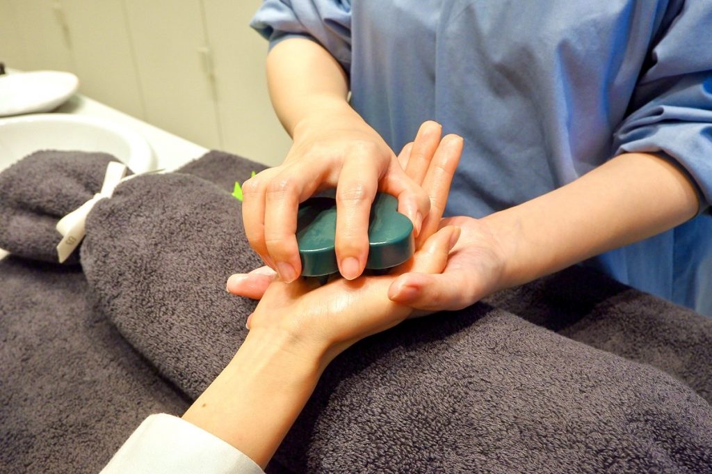 さらに、ストア内一番奥のタッチアップスペースには施術カウンターがあり、頭皮診断やハンドリフレの体験も座って受けることができます。