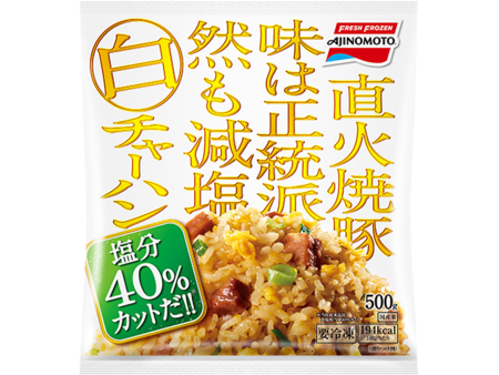 直火焼豚のうまさと、卵、白葱が香ばしい、シンプルで正統派な味付けのチャーハン。しかも塩分40%カット※なので、塩分を気にせず欲望のままガツガツ食べられるのが魅力。