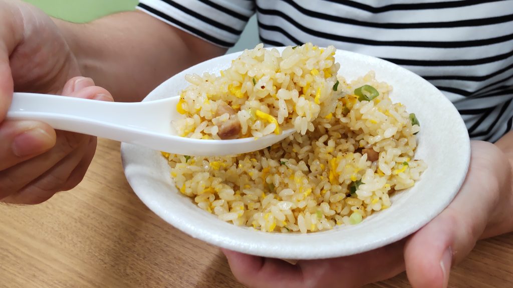 「正直に言うと、焦がしにんにくの風味がきいた『ザ★®チャーハン』が好みなので、減塩の白チャーハンは物足りないだろうなぁと思ってましたが、塩が少ない方がグッとうま味が引き立っていますね。むしろシンプルな味付けで、ラーメンスープにも合うし、酢豚の餡をかけて食べてもいいし。とにかく、いろんな料理のお供にぴったりですね。『ザ★®チャーハン』から白派に推し変しそう…」。