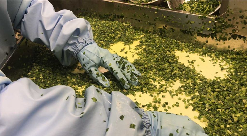 商品の原料は、鮮度や異物チェックなどの厳しい検査を行い、合格した原料のみを使用。お肉(鶏肉、豚肉)と野菜は国産のものを使っているそう。安心安全、そして丁寧に調理されたチャーハンや餃子は、そのままの風味と新鮮さを保つため、急速凍結。途中の段階で何度もチェックして検査に合格したもののみを出荷しているそうです。