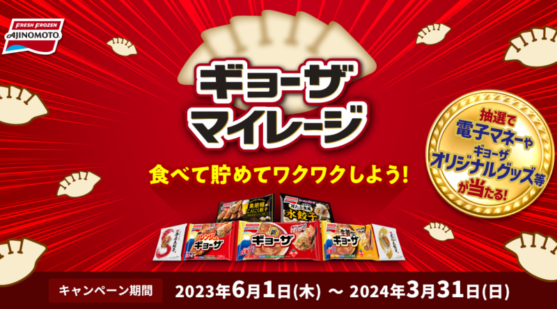 LINE公式アカウント「ギョーザマイレージ(味の素冷凍食品)」を友だち登録して参加。対象商品を購入したレシートを撮ってLINEで送ることでポイントが貯まります。貯まったポイントで、定期的に変わる賞品に応募可能。その他、味の素冷凍食品のお得な情報やイベント情報などもお届け。