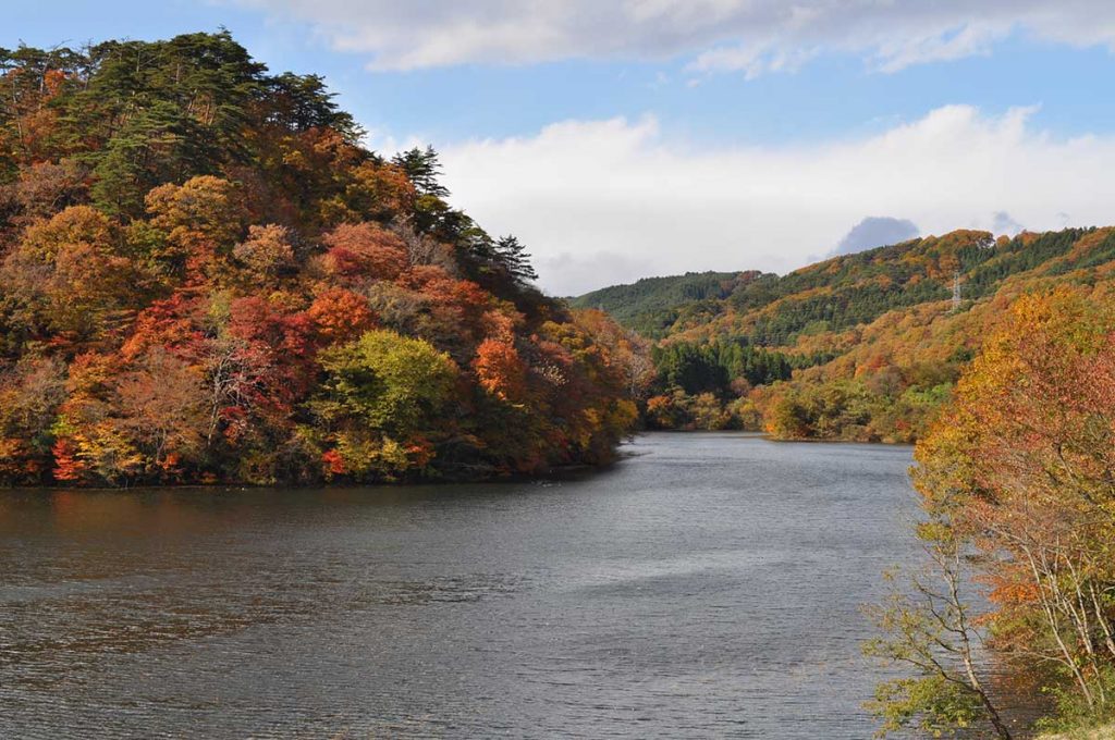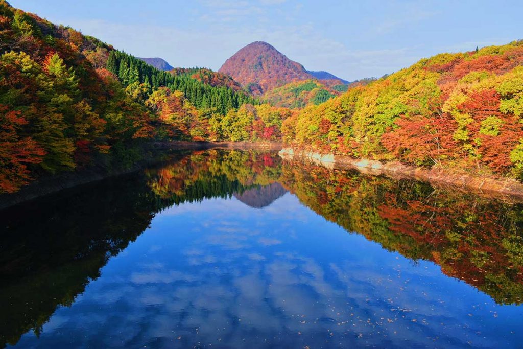 16.映り込む紅葉を楽しむ穴場スポット『二ツ石ダム』(加美町)