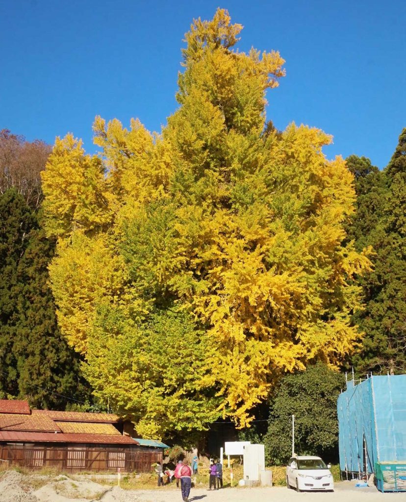高さ約42m、根の周辺が約17mという銀杏の巨木。樹齢約700年以上と言われる、宮城県指定の天然記念物です。黄緑から徐々に全体が黄色に染まっていく様子は、生命の息吹を感じますよ。葉が散った時には地面が黄色の絨毯を敷いたようになり、その風景も美しいと評判です。周辺には大銀杏と夫婦といわれる銀杏の木があり、その木の紅葉も見ものですよ。