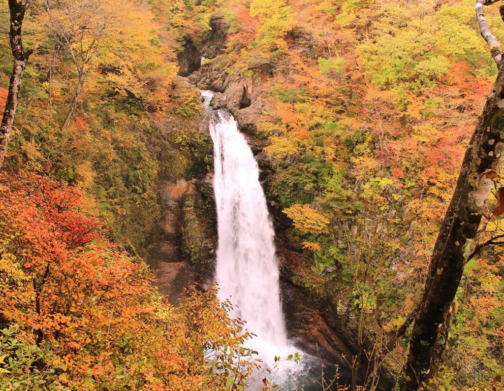 1.迫力満点の名瀑を赤や黄色が飾り立てる『秋保大滝』(仙台市)