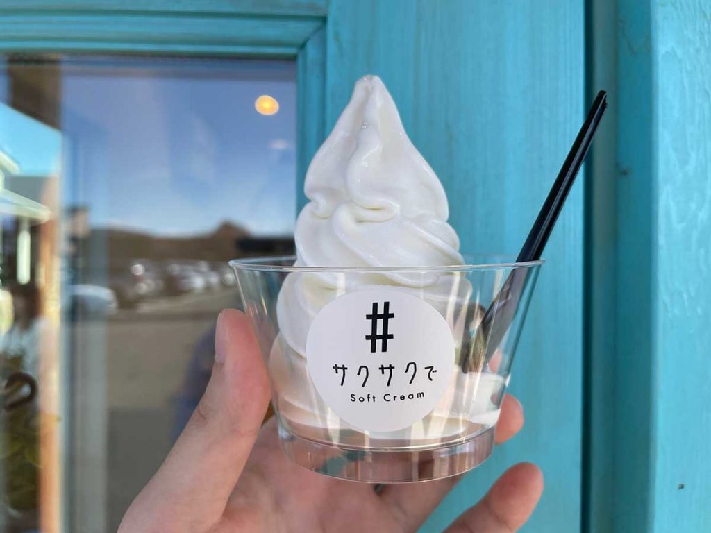 蔵王チーズを使用したこちらのソフトクリームは、上品な甘さとチーズの風味が感じられるひと品。店頭に用意されている岩塩をかけるとチーズの風味がさらに際立つんだそうです!味変して味の違いも楽しんでみてくださいね。