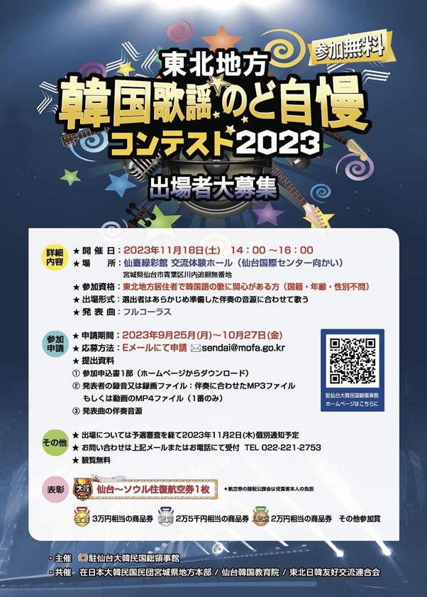 参加資格:東北地方居住者で韓国語の歌に関心がある方