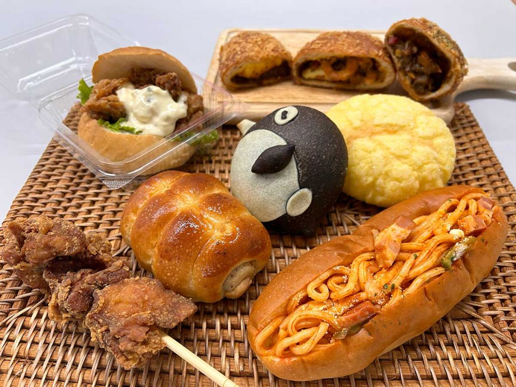 ほかにもおいしそうなパンが盛りだくさんで、トングを持つ手が止まりません。「もっちり太麺のナポリタンドッグ」(270円)、「ちくわパン」(250円)、「ペンギンパン」(280円)などなど…。北海道のソウルフード「ザンギ」を使ったパンや“ザンギ串”もあるのが面白い!