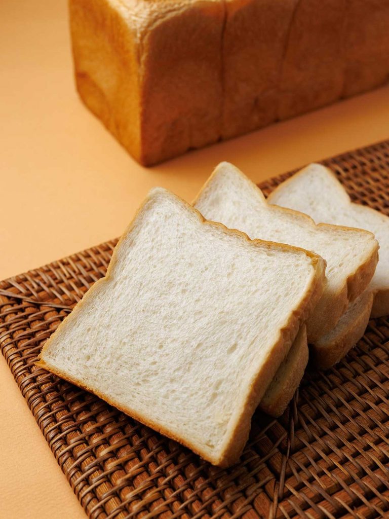 北海道産小麦ゆめちからを100%使用した食パン。卵、牛乳、バター、マーガリン、ハチミツを使っていないので、小さな子どもからお年寄りまで安心して食べられるのもポイントです。キメが細かく、やわらかくてもっちりとした食感とクリスピーな耳がおいしい!