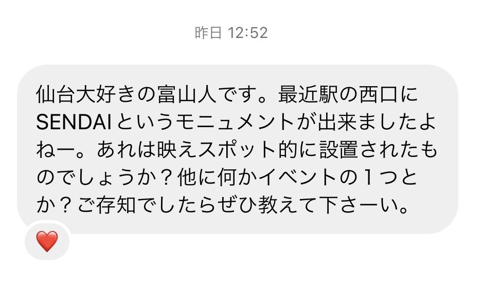 仙台駅前に現れた写真映え抜群の「SENDAI」モニュメント。どんな愛称で呼ばれていくのかも楽しみですね。