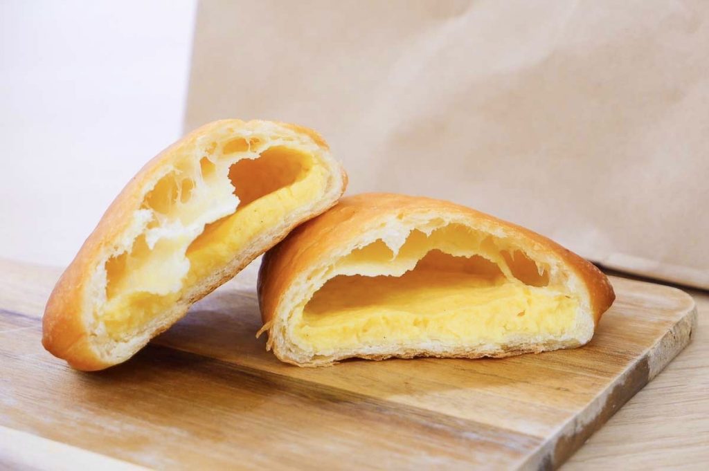 パン生地そのものにもヤギミルクを使用したプレミアムクリームパン。タマゴ不使用のブリオッシュ生地に包まれているのは、ヤギミルクで炊いたカスタードクリームにヤギバターを加えて濃厚なコクと風味をプラスしたもの。確かに濃厚な風味でクセになるおいしさです。