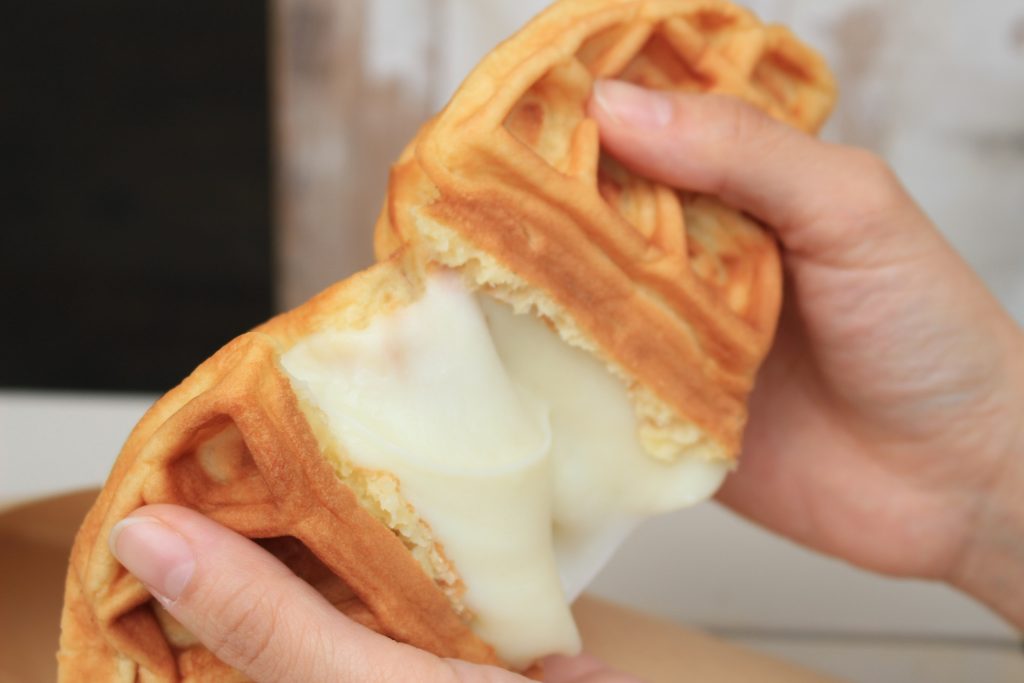 パンケーキ生地にクリームチーズとマッシュポテト、ベーコンなどをサンドした「panffle」(734円)