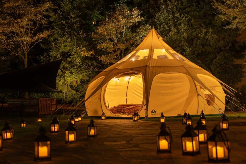 利用人数:◆ベルテント:6名以上、8名まで ◆ロッジテント:4名以上、6名まで