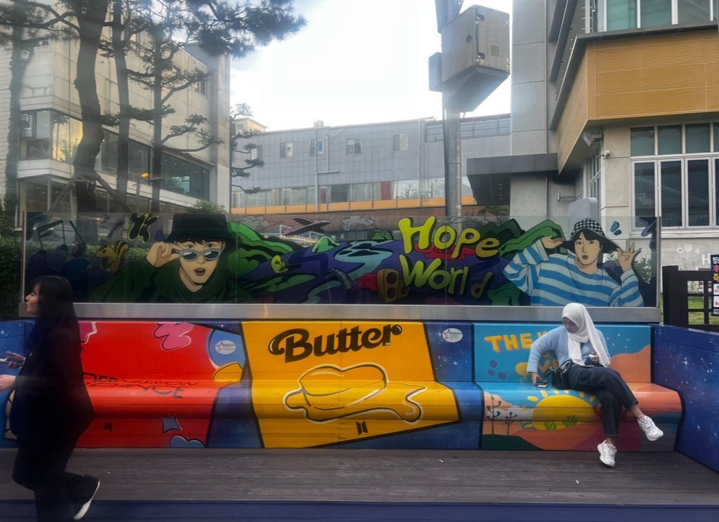 多くのスターたちが育った場所・忠壮路(チュンジャンノ)にあるK-POP通りには、K-POPスター街のランドマークであるJ-HОPE WORLDファンメッセージ造形物や、約50人のK-POPスターのハンドプリンティング、愛蔵品などが展示されています。