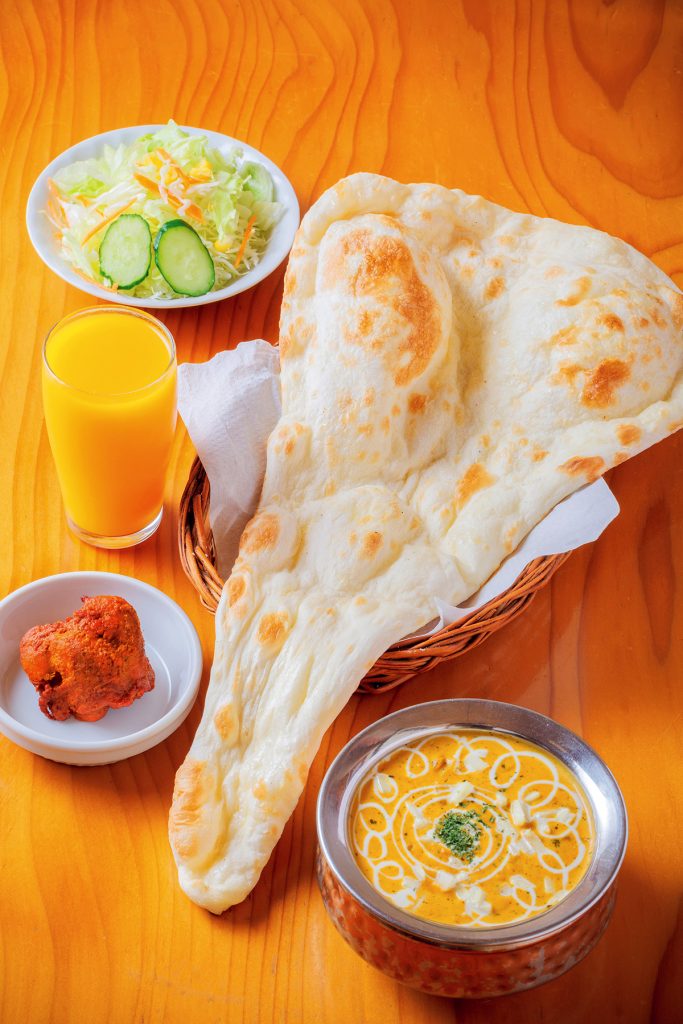 季節のカレーにナン・サラダ・チキン1P・ドリンクが付いた「スペシャルセット」(1,499円)