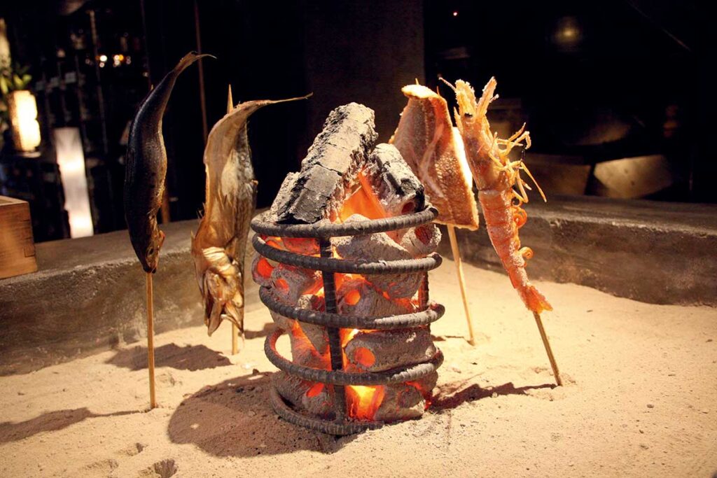 旬の魚介や季節野菜を、炭火でじっくりと焼き上げます。香ばしい香りと凝縮された旨みがたまりません