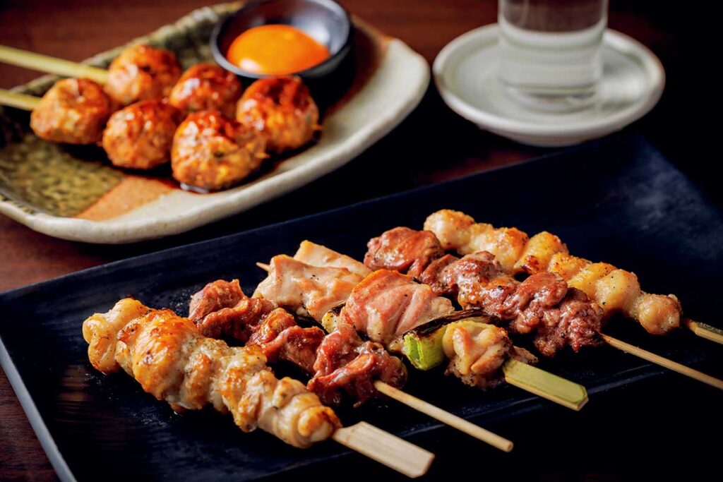 炭火でじっくりと焼き上げる国産鶏の焼き鳥を肴に、銘酒「乾坤一」など宮城の地酒を味わうのが定番
