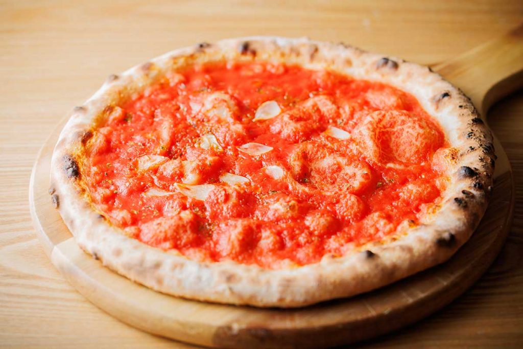 チーズを使わないイタリアのオーセンティックなピザ「マリナーラ」(1,320円)は、トマトソースのほどよい酸味がアクセントとなって美味