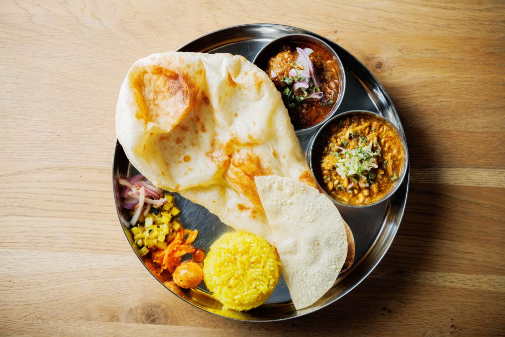 『笑夢』のナンプレート カレー2種(1,500円)※ナン、ライス、サラダ、平日はソフトドリンク付き