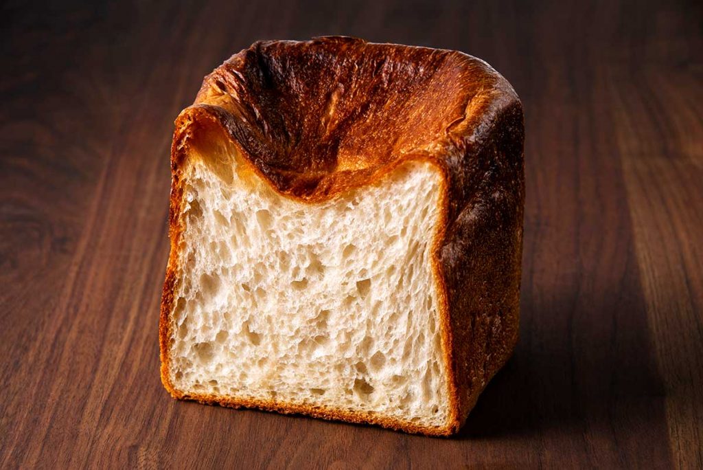 国産の超強力粉・ゆめちからを原料に、2種類の湯種を使って限界ギリギリのところを攻めたという食パン。なんでも、通常パンづくりに不可欠な水を入れず、湯種由来の水分を活かしているため、とても難易度が高いパンなのだとか。