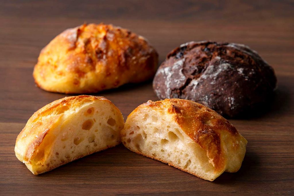 「リュスティック」とはフランスパンの一種で、水分量が多いことから生まれる、外はカリッと、中はもっちりと弾力のある歯応えが特長。
