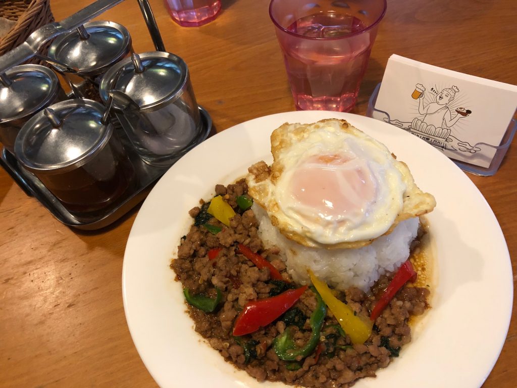 こちらは41ページに掲載の『BISTROTHAI』さんでの1枚。お店自慢の「ガパオライス」はタマゴを絡めて豪快に頬張るのがグッドです。誌面ではこの時季のぴったりの「鶏肉のお粥」も紹介していますよ!