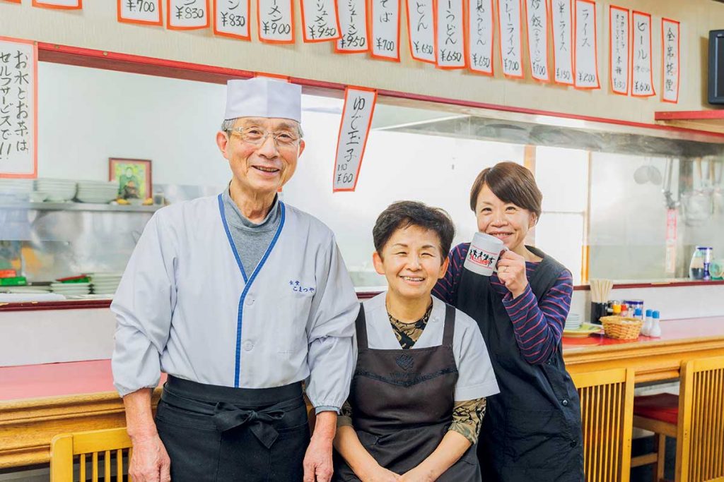 スープや具材の仕込みはお父さん、ラーメンを仕上げるのはお母さん、接客は娘さんが担当する『味のこまつや』。もともとはお米屋さんだったそうですが、お母さんのお祖母さんにあたる先代が昭和20年代から食堂を始めて、昭和40年代からお母さんがバトンを受け継いでいます。
