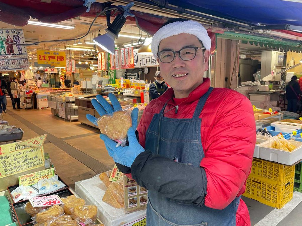 新鮮な地元宮城の食材を豊富に取り揃える仙台駅前の商店街「仙台朝市」。ここで約60年にわたって店を営む『まるけい』は、おでん用の練り物や海産物などを販売する商店。
