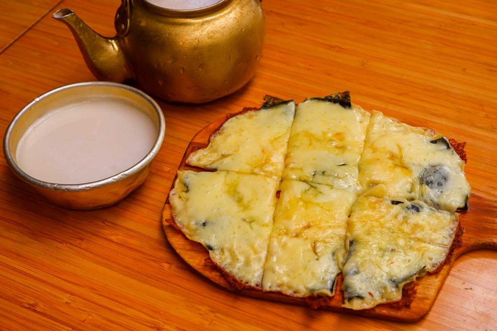 チヂミの上に韓国のり、たっぷりチーズそしてハチミツが乗ったのりチーズチヂミ🇰🇷