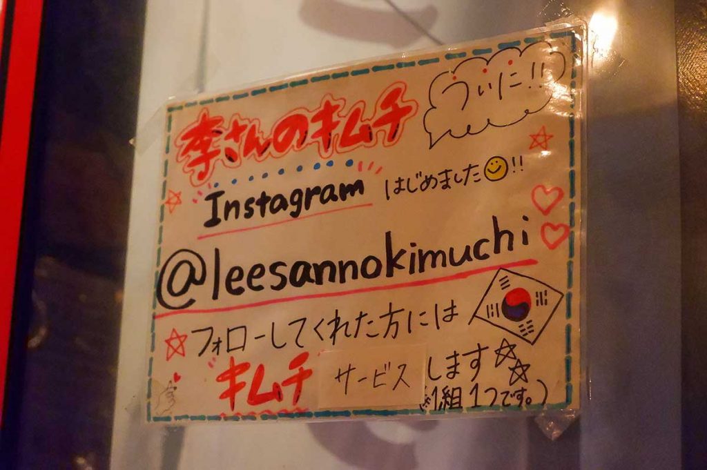 『李さんのキムチ』ではInstagramフォローで1組1つキムチをサービスしてくれます♥️