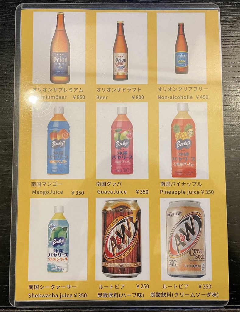ドリンクメニュー表。オリオンビールも用意していますよ
