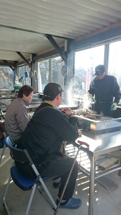 遊覧船乗り場のすぐ隣には、焼き牡蠣設備があります。初日の出の絶景を拝んで小腹がすいたら、今が旬の獲れたて新鮮な奥松島産の牡蠣で、心もお腹も満腹にしよう!