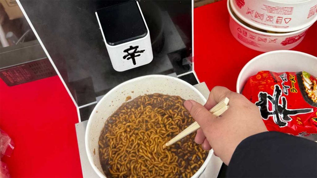 好きなラーメンを選んで専用カップに入れ、ボタン一つでおいしいラーメンができちゃう!