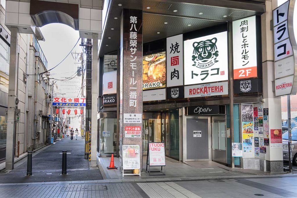 文化横丁の入り口に誕生。B1Fにライブハウス『ROCKATERIA』が入っている『第八藤栄サンモール一番町ビル』の2Fに位置