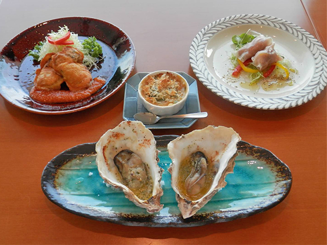 牡蠣オイル漬け、ガーリックバター焼き、牡蠣グラタン、ピカタなどが味わえる人気のコースも