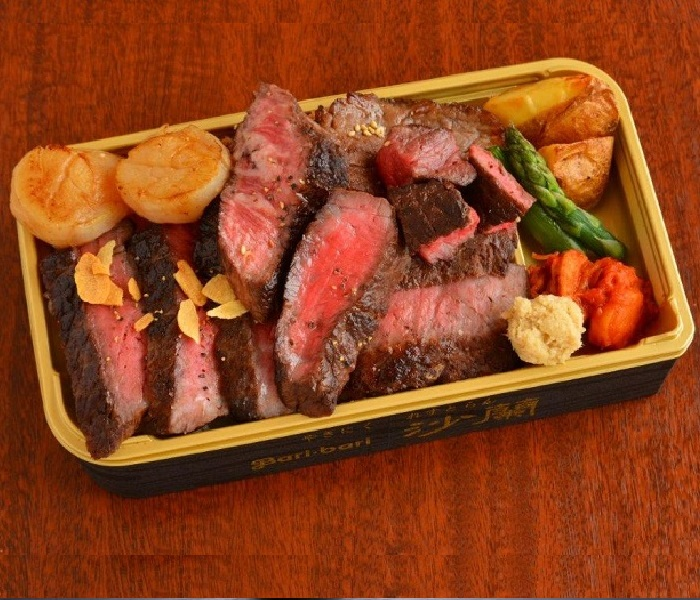 『やきにくれすとらん沙蘭』「道産牛6種と道産ホタテのステーキ盛り合わせ弁当」(1折・2,700円)※連日50点限定、実演あり