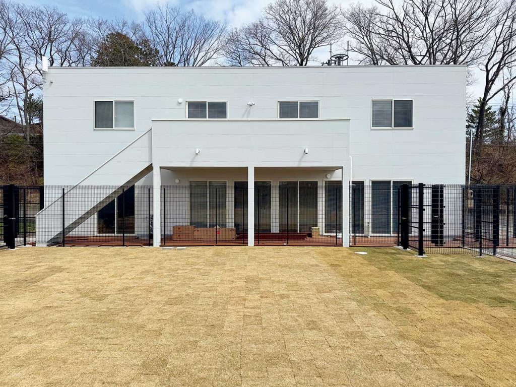 小型犬から大型犬まで楽しめるドッグラン。ウッドデッキやテラスからもワンちゃんたちが遊ぶ姿を眺められます