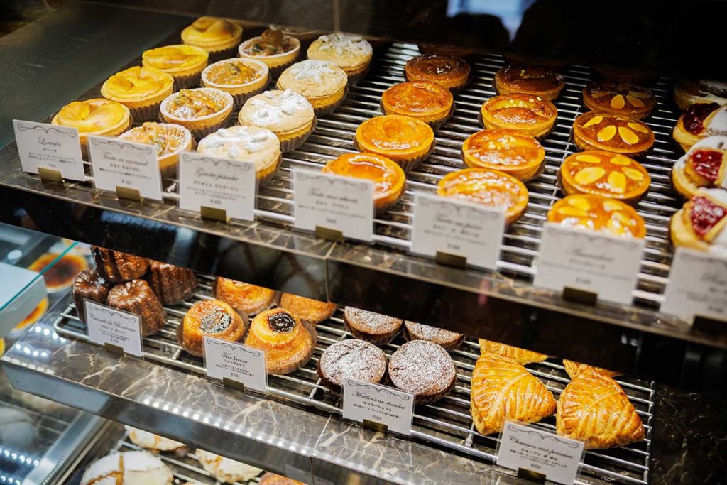焼菓子のショーケース。美しいフランス菓子が並ぶ様子に心も踊る