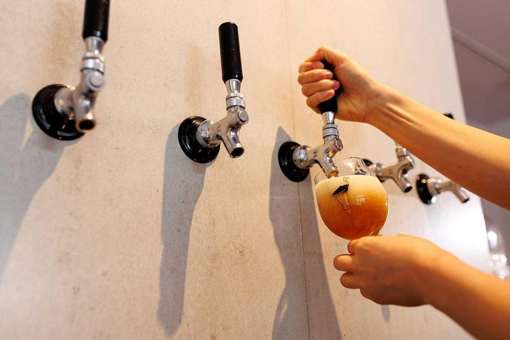 壁からにょきっと出ているタップで注がれ、フレッシュなおいしさを味わうことができます。
