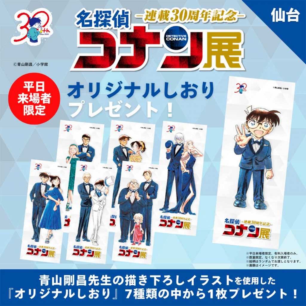 連載30周年を記念して、『東北福祉大学ギャラリーミニモリ』にて「連載30周年記念 名探偵コナン展」を開催中です。