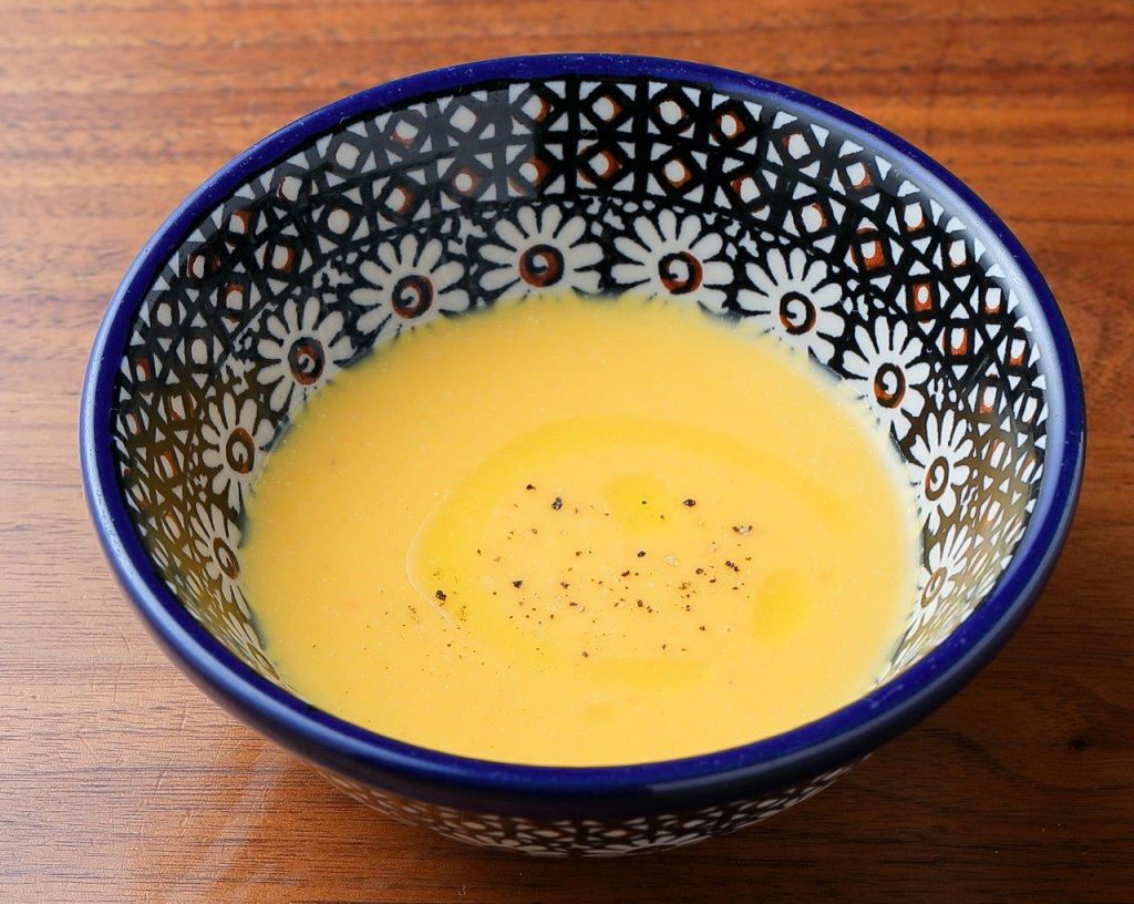 素材の味を活かしたシンプルな味付けがポイントの「カボチャのポタージュ」は、バゲットと合わせてどうぞ