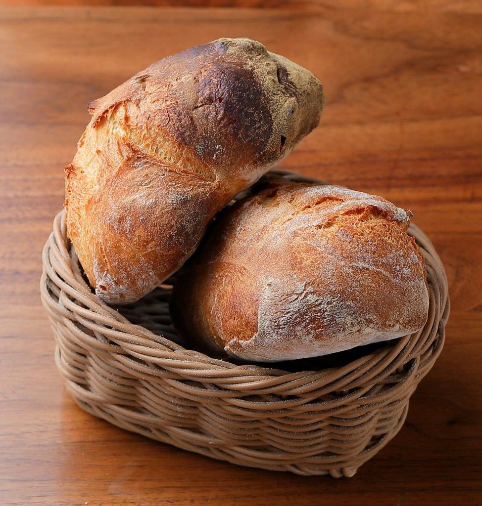 多加水の生地を高温で焼き上げた自家製バゲットは、表面はパリパリ、中はもっちりとした自信作