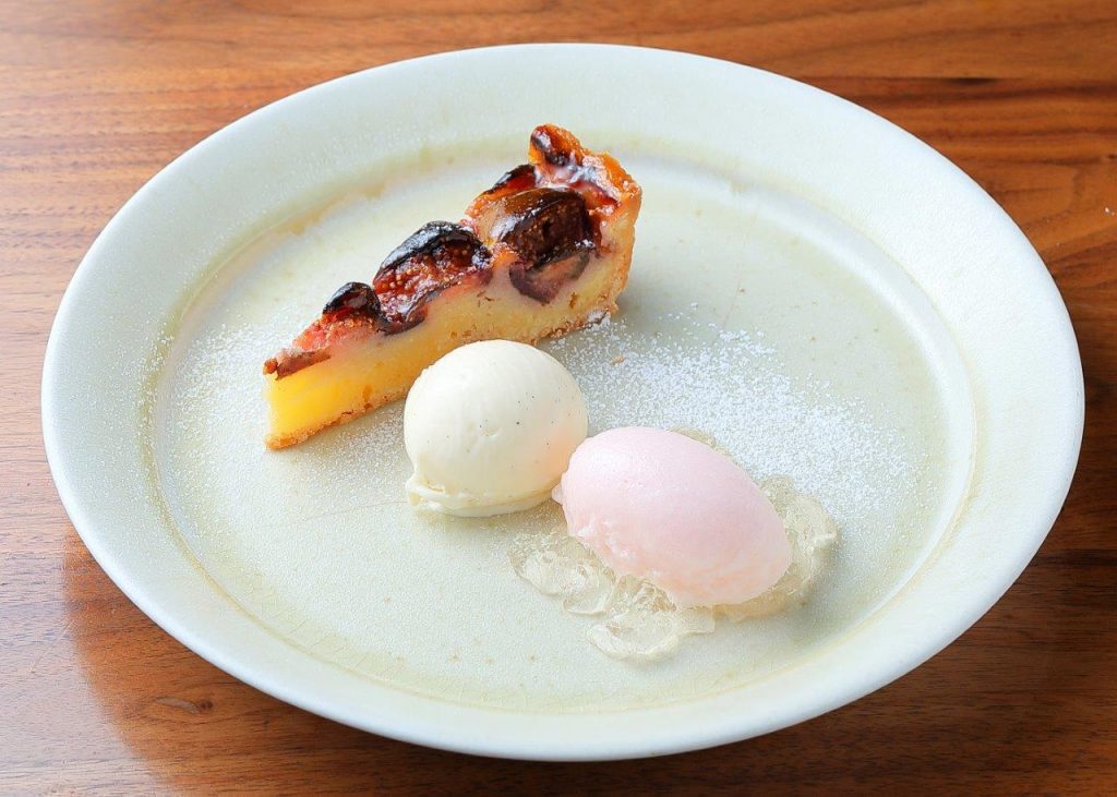 「自家製デザート盛り合わせ」はその時季の旬のフルーツを使ったスイーツを用意。冬季に登場する黒イチジクのタルトは女性に大人気