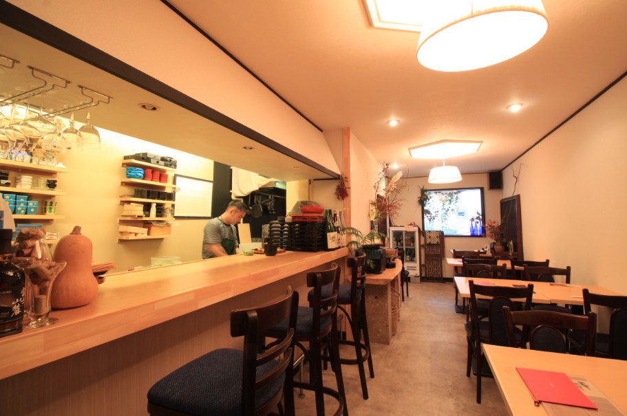 カウンターには東北をはじめ全国の銘酒と自然派ワインがずらりとならぶ