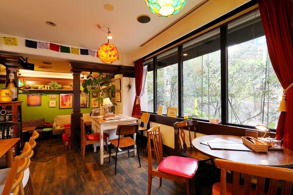 カラフルな家具や小物が調和するオリジナルな空間。大きな窓から四季折々の景色を見ることができる
