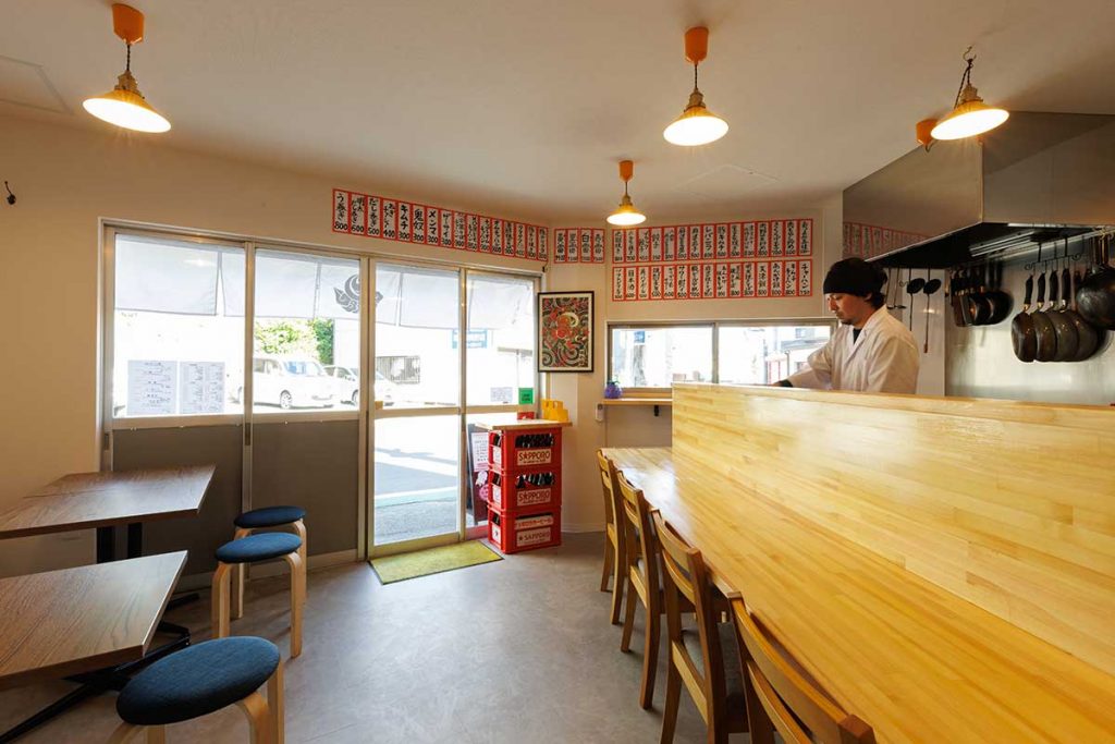 店内は、テーブル席、カウンター席を完備。一人でも、家族とでも楽しめます