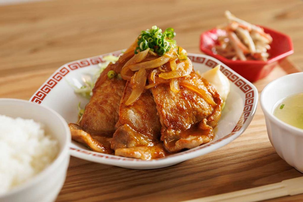 綺麗に盛り付けられた生姜焼きは、生姜の香りと肉の旨みでご飯がすすむ…!