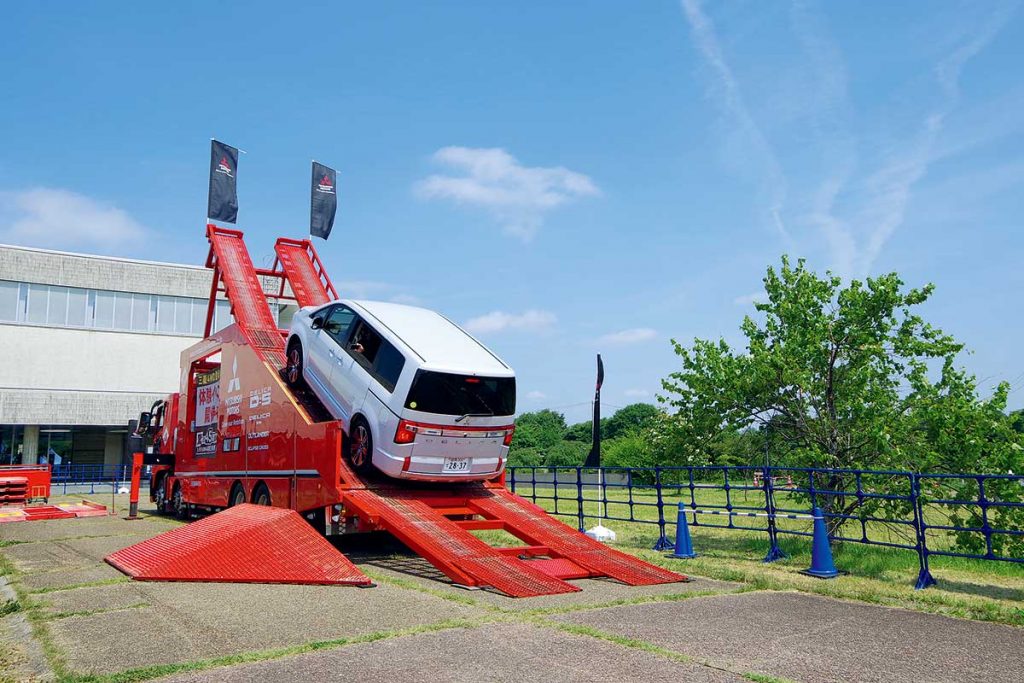 イベントでは「デリカD:5」での登坂実演イベントも実施。45度の傾斜を力強く登っていく姿を見て、見学していたお客さんからも大きな歓声が上がっていました。